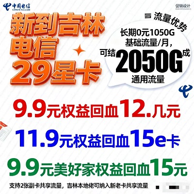 作为吉林本地专属神卡,电信29星卡不搞“新用户歧视”!不管你是刚换号的新用户,还是用了几年的电信老用户,只要是吉林本地佬,都能办理或纳入流量共享池,不用换号、不用转网,原号码直接升级到29元长期套餐——2050G流量、副卡共享、权益返利全享受!很多老用户担心换卡麻烦、换号失联,现在完全不用愁,老卡直接加入共享,既能保留多年手机号,又能享受超大流量福利,本地人的专属优待太贴心!