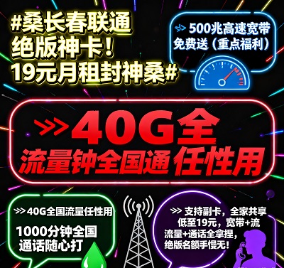 长春联通绝版福利!19元=500兆宽带+40G流量+1000分钟