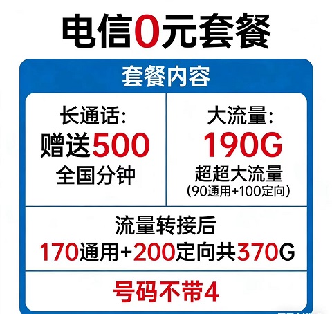 选手机号,不仅好用,还要好听、好记、有面子。这款电信0元内部套餐,全部配备精选优质号码,全程不带数字4,数字组合顺口、吉祥、大气,不管是自己用、给家人用、还是工作备用机,都非常体面。不用额外花钱买靓号,不用保底消费,0元套餐直接配好号,好用又好看,在一众普通号码里一眼出众。