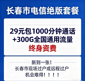长春稀缺好物!电信29元绝版套餐,终身资费+300G流量,手慢直接无🚨